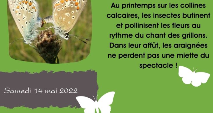 Au printemps sur les collines calcaires, les insectes butinent et pollinisent les fleurs au rythme du chant des grillons. Dans leur affût, les araignées ne perdent pas une miette du spectacle !