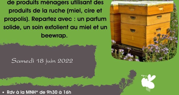 Le matin, découverte du monde des abeilles et ouverture des ruches du rucher pédagogique. L’après-midi ateliers de création de cosmétiques et de produits ménagers utilisant des produits de la ruche (miel, cire et propolis). Repartez avec : un parfum solide, un soin exfolient au miel et un beewrap.