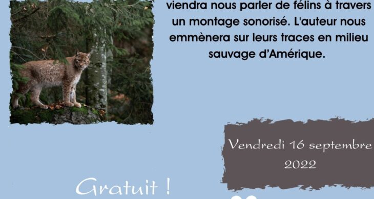 Photographe passionné, Francis HIRN viendra nous parler de félins à travers un montage sonorisé. L’auteur nous emmènera sur leurs traces en milieu sauvage d’Amérique.
