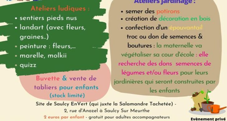 Au programme de cette journée : Atelier de plantation de cucurbitacées, sentier pied nu, création de décoration en bois pour le potager, construction épouvantails…