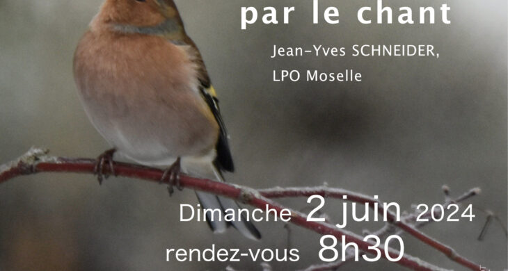 Dans le cadre de son Atlas de la Biodiversité Communale, la Mairie de Longeville-lès-Metz vous invite à partir à la reconnaissance des oiseaux par le chant en matinale du dimanche 2 juin. Observation visuelle et sonore, nous déambulerons sur les bords de Moselle, en compagnie de Jean-Yves SCHNEIDER de la LPO Moselle pour découvrir les oiseaux présents à cette saison, visibles à l’oeil nu ou cachés dans la végétation. Le départ se fera depuis le parking du Pâtural à 8h30. Accès libre