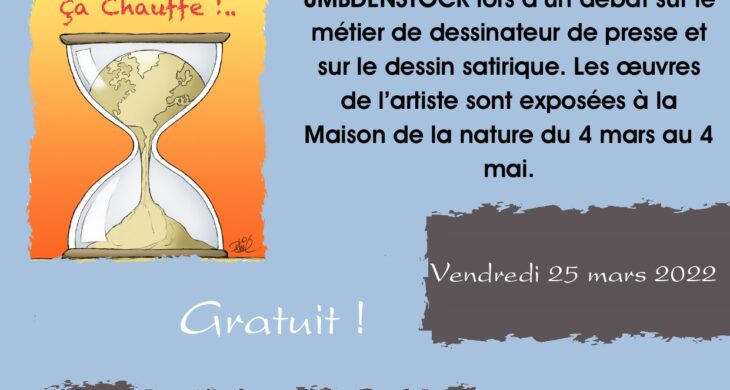 Venez rencontrer le dessinateur Phil UMBDENSTOCK lors d’un débat sur le métier de dessinateur de presse et sur le dessin satirique. Les œuvres de l’artiste sont exposées à la Maison de la nature du 4 mars au 4 mai.