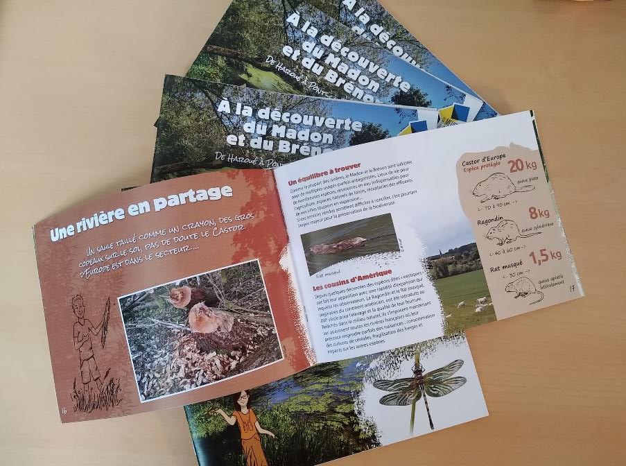Voici par exemple des outils d’information et de sensibilisation crées pour le site « Vallées du Madon, du Brénon et carrière de Xeuilley » afin de sensibiliser sur les enjeux naturels et la biodiversité. Ce projet comprend la création d’une exposition itinérante (1), d’un livre de jeu pour enfant (2), d’un livret de découverte tout public (3) et d’un plateau de jeu. (crédit photo P. Theis)