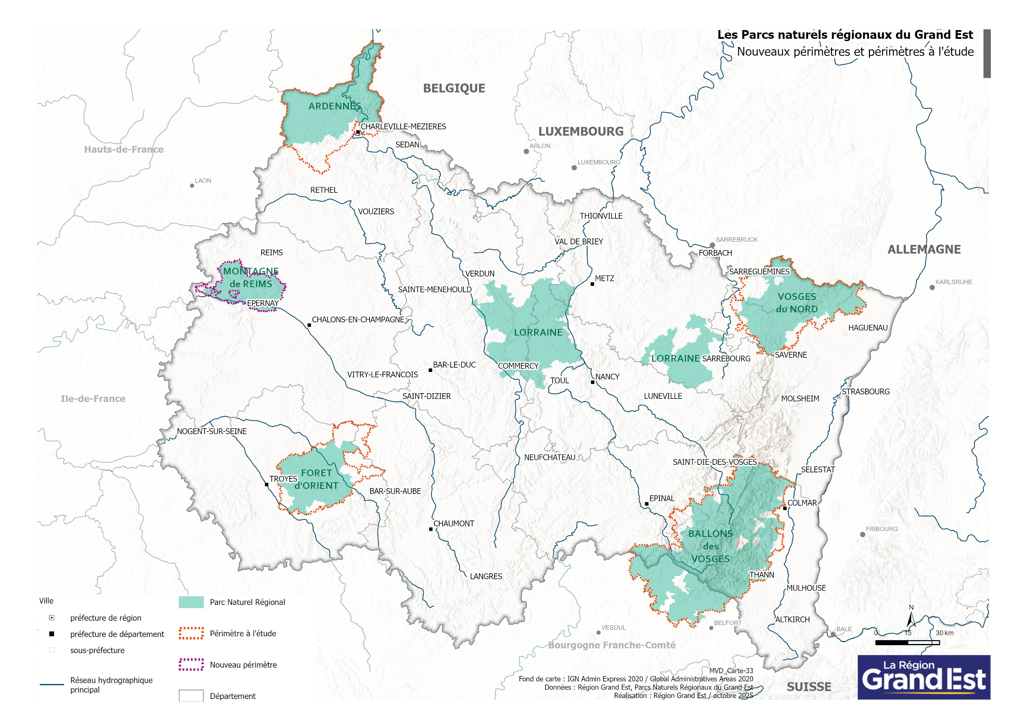 La France compte 56 parcs naturels régionaux et la région Grand Est, 6 qui couvrent 15% du territoire régional (655 communes) et hébergent 10% de sa population (525 000 hbts) , mais aussi, une très grande biodiversité.