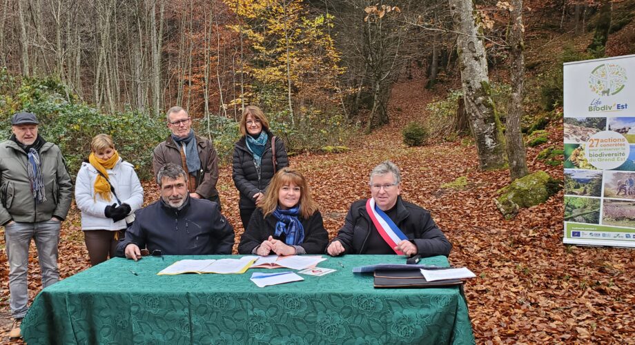 Lichtenberg (Bas-Rhin) – Samedi 8 novembre, environ 85 personnes ont participé à l’inauguration du premier îlot forestier en libre évolution des Vosges du Nord, sur le territoire de la commune de Lichtenberg. La cérémonie s’est déroulée en présence de Joëlle Wey, conseillère régionale, de Nathalie Marajo-Guthmuller, présidente du Parc naturel régional des Vosges du Nord, et d’Yves Klein, maire de Lichtenberg, ainsi que Claude Mongars, Délégué patrimoine Naturel et biodiversité à la Fondation du Patrimoine Alsace.