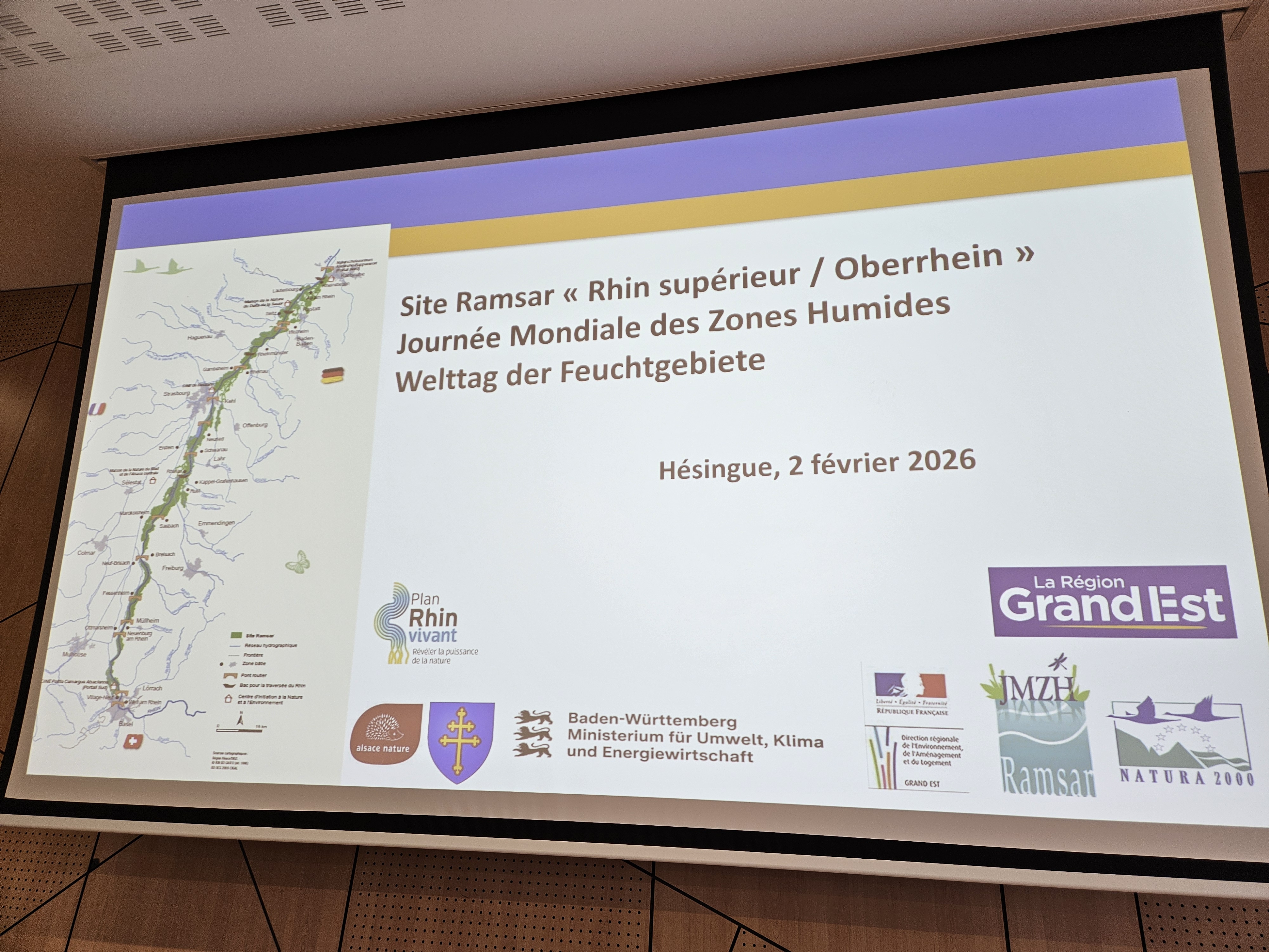 Lundi 2 février 2026, 80 participants français et allemands se sont réunis à la salle La Comète à Hésingue (68) pour célébrer la Journée Mondiale des Zones Humides. Au cœur des échanges : le site transfrontalier Ramsar « Rhin supérieur – Oberrhein », également classé Natura 2000, et ses projets phares pour la préservation des zones humides. Entre retours d’expérience et visites de terrain, cette édition a mis en lumière l’engagement concret des acteurs locaux.