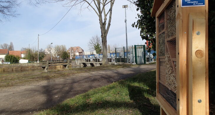 Sur ce linéaire, VNF s’est engagé à entreprendre des actions en faveur de la biodiversité. Dans ce cadre, 20 nichoirs à passereaux ont été déposés dans les arbres qui bordent le canal de la Marne au Rhin. En plus du bien-être des oiseaux, quatre hôtels à insectes ont également été disposés sur les berges des deux secteurs.